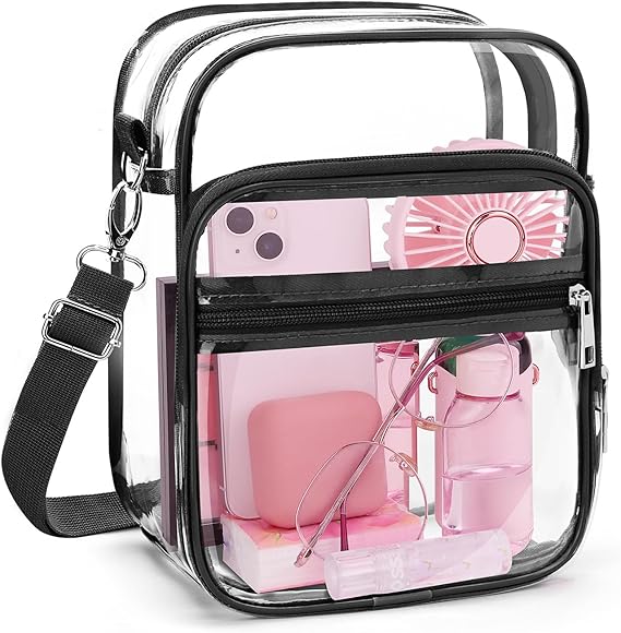 Clear Crossbody Bag with Adjustable Shoulder Strap, Stadium Approved PVC Clear Purse Bag, Clear Messenger Bag