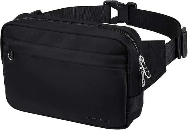 Crossbody Fanny Pack for Women Men Fashion Waist Pack Belt Bag with 4-Zipper Pockets for Hiking Running Travel, Black